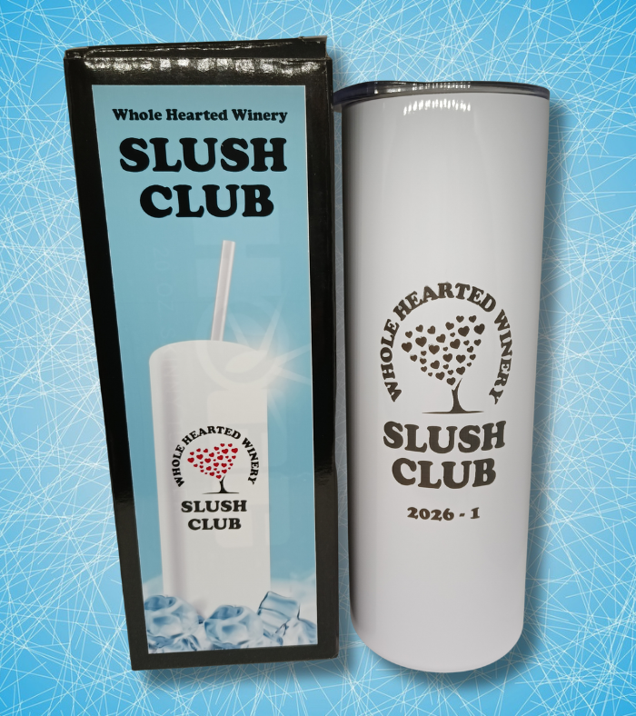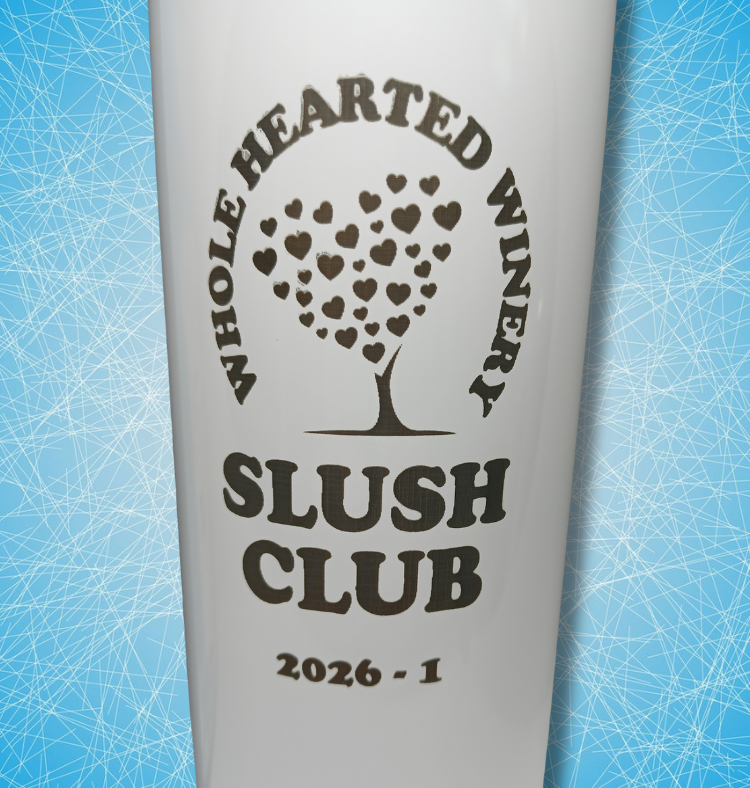Whole Hearted Winery SLUSH CLUB Logo is on the front along with the year 2026 and the number of the mug.